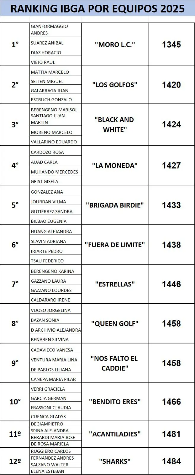 RESULTADOS RANKING POR EQUIPOS 2025