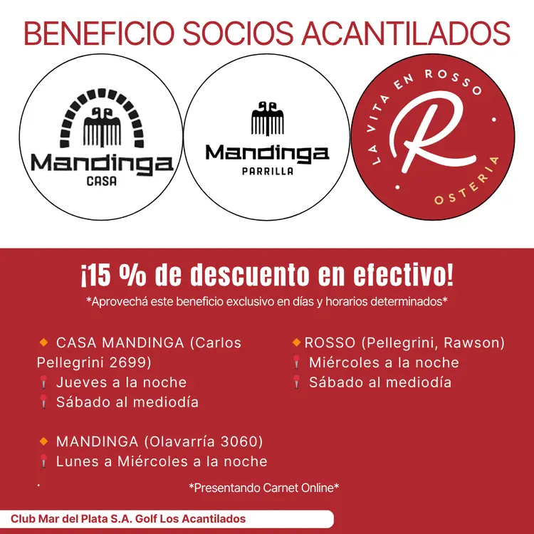 👉🏻15% de descuento, presentando carnet de socio digital.